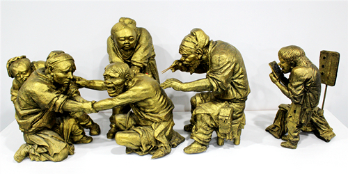 附圖:陳列在膏藥總部展覽館里面的村醫(yī)貼膏雕塑